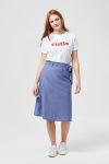 Táto svetlo-modrá sukňa JASMINE môže byť počas nasledujúcich teplých dní rovnako všestranná ako Vaše obľúbené džínsy. Príjemný materiál, midi dľžka, kontrastný bavlnený opasok.