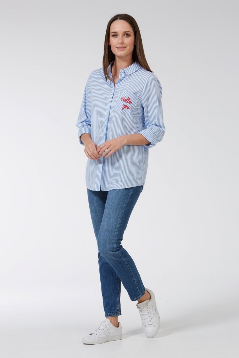 Pohodlná pruhovaná dámska košeľa CHARLI vyrobená v štýle pánskej košele je fantastickou voľbou v kombinácii s tenkým tričkom a obľúbenými džínsami. Jednoduché vrecko s vyšívaným skriptom, manžety s jedným gombíkom, ležerný vzhľad, príjemný materiál.