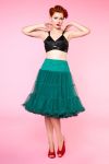 Zelená retro spodnička Dolly and Dotty je veľmi objemná. Skladá sa z dvoch vrstiev bohatého tylu s nariaseným lemom, pružná guma v páse, mäkký a nadýchaný materiál. Spodnička sedí pod šaty, ktoré majú dľžku pod kolená, krásne zvýrazni objem sukne.