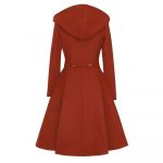 Ak na túto nadchádzajúcu sezónu hľadáte niečo iné, úžasný kabát Heather s kapucňou v krásnom oranžovom odtieni bude dokonale ladiť s jesennými odtieňmi vo Vašom šatníku. Elegantný strih, zúžený v páse a rozšírený cez boky, dvojradové zapínanie na gombíky, dľžka približne po kolená, čierna saténová podšívka, dve predné bočné zahnuté vrecká, štýlová široká kapucňa. Tento kabátik v retro štýle Vás v zime dokonale zahreje a jeho strih Vám dodá pocit sebavedomia a elegancie.