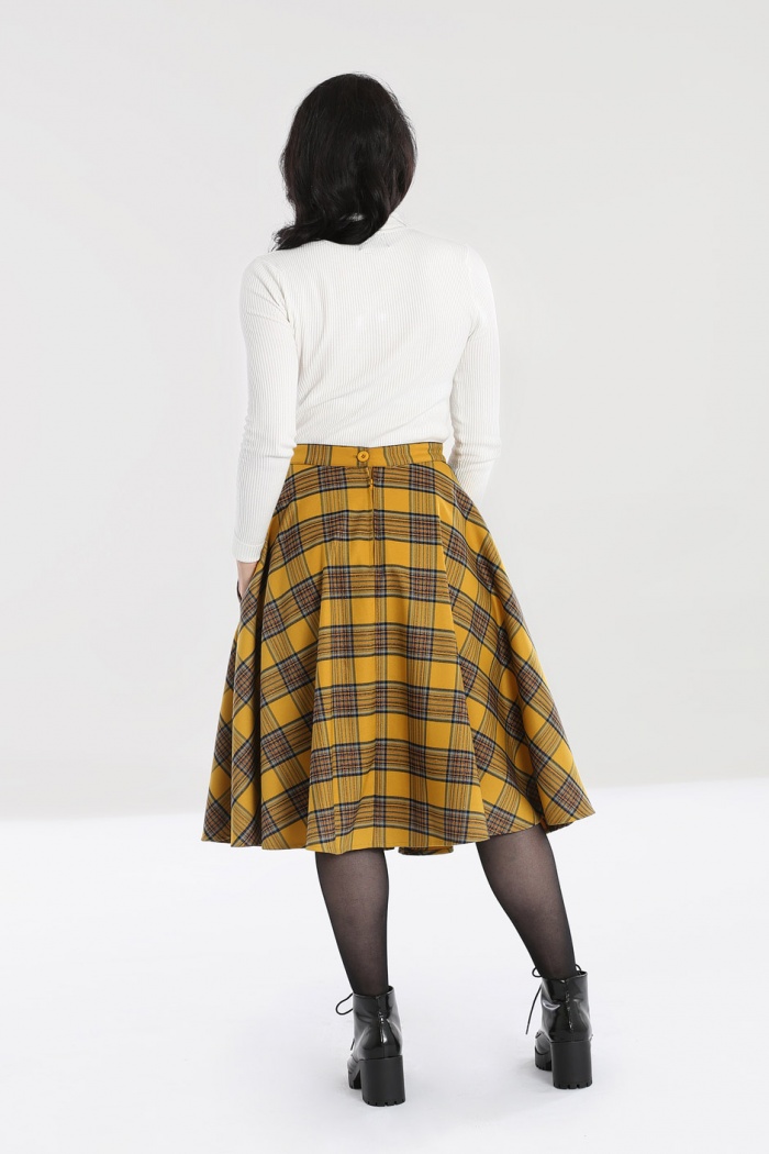 Hell Bunny Dijon Horčicová károvaná sukňa