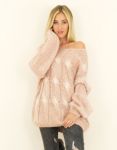 Oversize ružový sveter Lydia , ktorý skvele vyzerá a navyše Vás aj dokonale zahreje. Jemná pastelová ružová farba, biele kosoštvorce, osmičkový vzor, pohodlný strih. Komfortný strih vo veľkosti UNI ( jedna veľkosť ) sedí od veľkost S - 2XL .