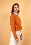 Hnedá mikina rovného strihu je univerzálny kúsok, ktorý vyzerá dobre aj s bielou košeľou. Jemný bavlnený materiál, okrúhly výstrih, nápisová výšivka na ľavej strane vpredu, rebrovaný lem v spodnej časti rukávu.