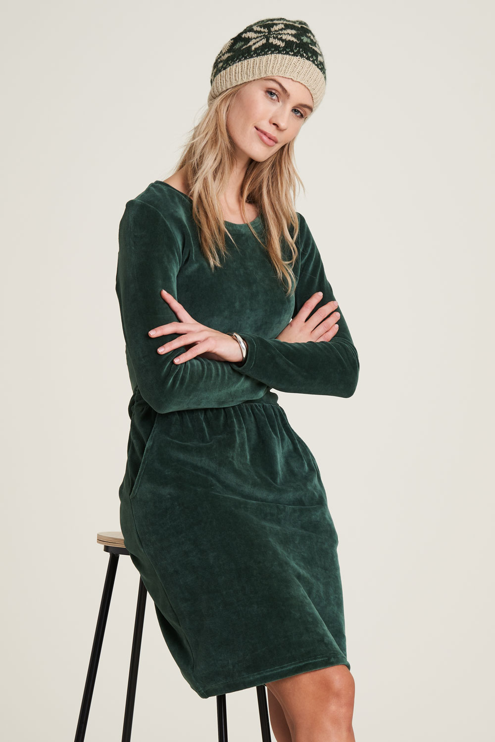 Pohodlné a elegantné šaty Nicki sú obzvlášť pútavé vďaka materiálu velúr ktorý je vyrobený zo zmesi organickej bavlny. Široké manžety vám poskytnú ešte väčšie pohodlie, zatiaľ čo áčkový strih zvýrazni Vašu ženskosť. Minišaty sú vhodné na každodenné nosenie alebo môžete skombinovať s tmavými pančucháčmi a ladiacimi šperkami.
