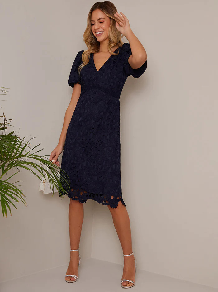 Ďalšie výhody: som navrhnutý s ohľadom na špeciálne príležitosti, s prémiovou čipkou v tmavomodrom odtieni. Môj véčkový výstrih a puff rukávy sú mimoriadne lichotivé a jemné, púzdrová sukňa dodáva trochu viac ženskosti. Skombinujte ma so svojimi obľúbenými doplnkami, aby ste dokonale zladili svoj vzhľad.
